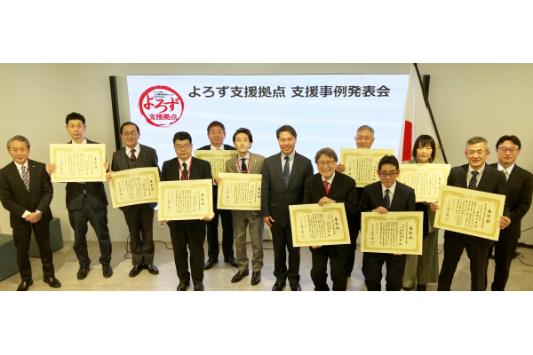 中小機構は3月9日、東京都千代田区の経済産業省別館7階共創空間ベツナナで「よろず支援拠点支援事例発表会」を開催し、今年度から始まった「よろず支援拠点コーディネーター表彰制度」で中小企業庁長官賞成長支援事例表彰の受賞者(5人)と中小企業庁長官賞優良事例表彰の受賞者(5人)の表彰式を行った。