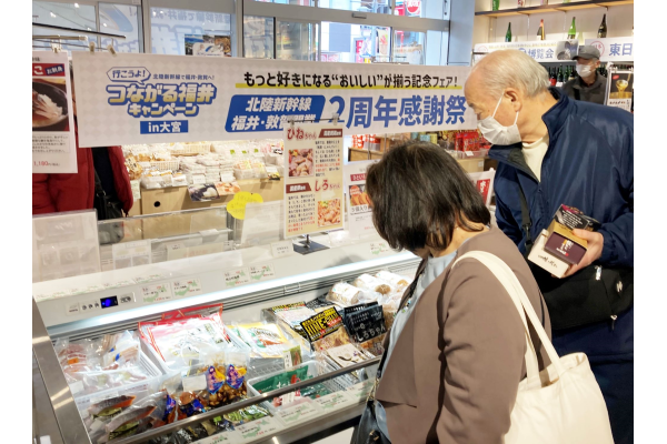 福井県は、北陸新幹線福井・敦賀開業2周年感謝祭をさいたま市大宮区の「まるまるひがしにほん東日本連携センター」で3月22日まで開催している(16日は休館)。