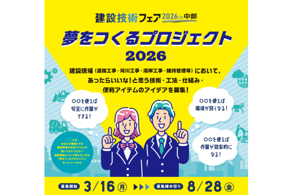 中部地方整備局、名古屋国際見本市委員会などで構成する建設技術フェアin中部運営委員会は、学生を対象とした建設技術に関するコンペティション「夢をつくるプロジェクト 2026」を開催する。
