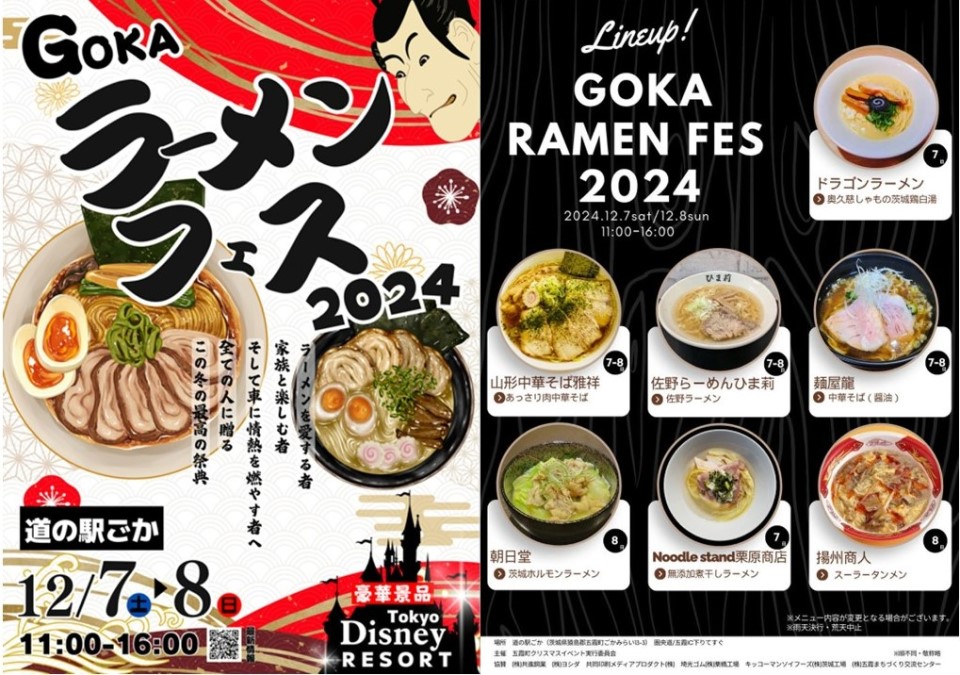 茨城県五霞町は、第2回目となる「ごかラーメンフェス2024」を12月7、8日に道の駅ごかで開催する。公募による全7店舗のラーメンキッチンカーが会場に集まり、自慢のラーメンを提供する。開催時間は両日とも11~16時。
