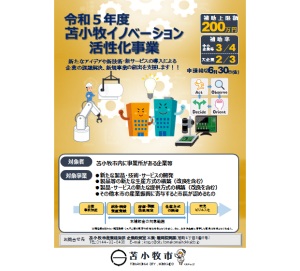 北海道苫小牧市は、市内の事業者を対象に、新たな製品・技術・サービスの開発、製品等の新たな生産方式の構築、製品・サービスの新たな提供方式の構築などのイノベーションに結び付く取り組みへの補助を行う。