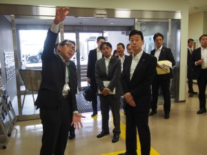 西村経産相は、中島康明中小機構近畿本部長から、クリエイション・コア京都御車について説明を聞くとともに、入居企業の研究施設を視察した。入居企業の株式会社イクスフォレストセラピューティクスは、RNAを標的とした創薬プロセスの化合物探索方法の研究・事業化に取り組んでいる。代表取締役CEO 樫田 俊一氏は「分注機などの装置の多くが、NEDOやものづくり補助金などの支援を得て導入した」などと説明した。