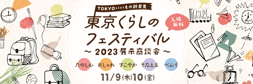 東京都中小企業振興公社は、東京生まれのくらしを彩る生活関連商品をテーマとした展示商談会「東京くらしのフェスティバル2023」を11月9、10日に東京都立産業貿易センター台東館(東京都台東区)で開催する。「毎日の暮らしを楽しく、快適に過ごすアイテムがきっと見つかる」をテーマにした生活関連商品の展示商談会で今回が7回目。入場無料。