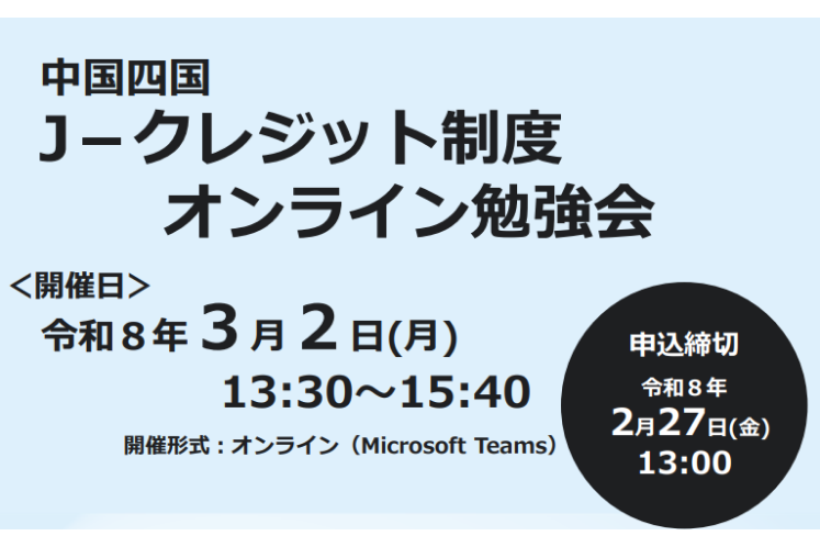2026年2月20日J-クレジット制度に関するオンライン勉強会を開催:中国四国農政局