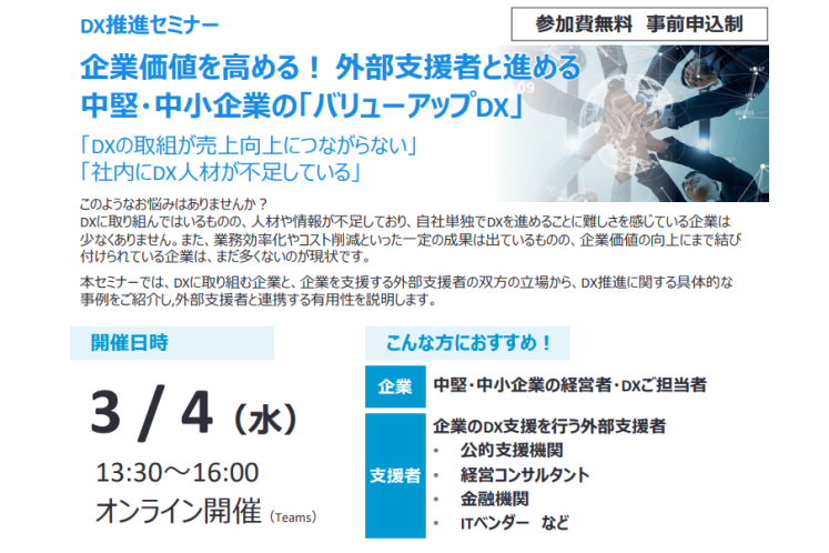 2026年2月20日中堅・中小企業のためのバリューアップDXセミナーをオンライン開催:関東経済産業局