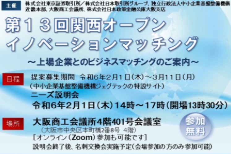 上場企業と中小企業のビジネスマッチングを支援:中小機構・近畿本部
