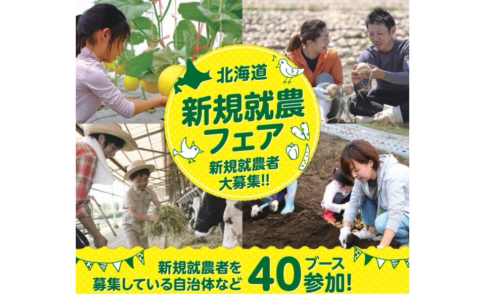 イベントでは、自治体ブースのほか、北海道農業公社就農相談ブースや移住相談ブースが設置される。さらに先輩新規就農者2人をゲストに招き、就農にまつわるトークディスカッションを行う。会場内にはキッズスペースがあり、子ども連れの家族でも気軽に来場できる。