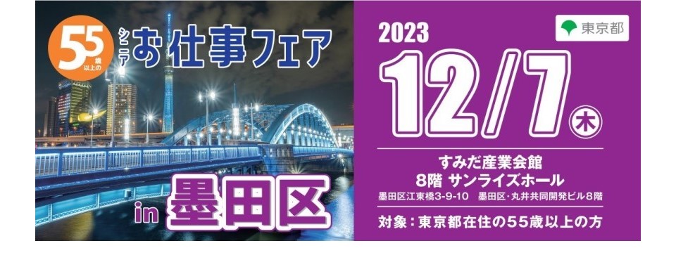 55歳以上対象の「シニアお仕事フェアin墨田区」12月7日に開催:東京都など
