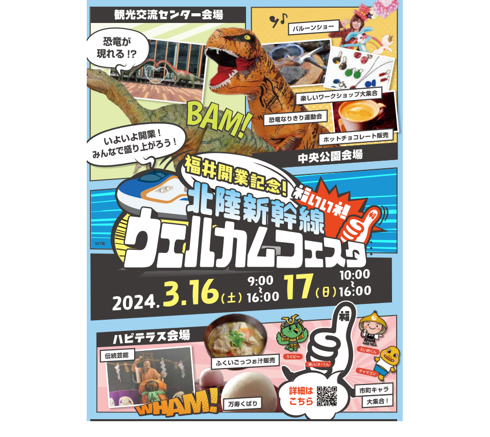 福井市は3月17日に北陸新幹線の金沢~敦賀間の開業を記念して、3月16、17日にJR福井駅周辺で「北陸新幹線ウェルカムフェスタ」を開催する。県外から来訪する観光客を歓迎し、市民と開業をお祝いするメインイベント。