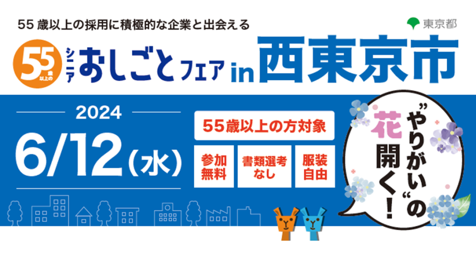 55歳以上対象の合同面接会を6月12日に西東京市で開催:東京しごと財団
