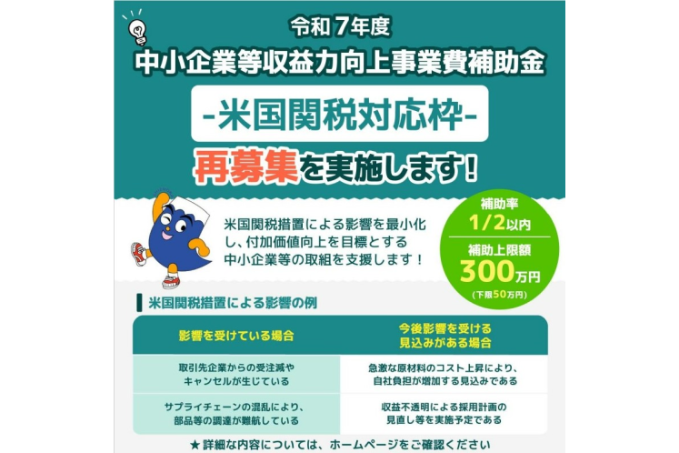 静岡県は、米国関税措置の影響を受ける中小企業を支援する「中小企業等収益力向上事業費補助金(米国関税対応枠)」の再募集を9月26日から受け付ける。