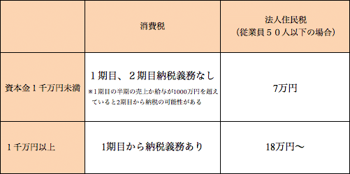 逆に言うと、資本金が1000万円未満ですと1期目、2期目の消費税の納税義務がないため、2年間は消費税の納税額を免除されるという節税メリットがあります。この消費税の節税メリットを受けるには、資本金を1000万円未満としておく必要があります(税制改正により、1期目の半期の売上か給与のどちらかが1000万円を超えていると2期目から消費税の納税義務が生じてくる場合があります)。