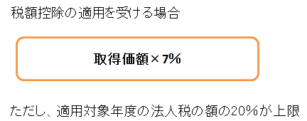 税額控除とは、設備の購入金額の○%の法人税を減税するという制度です。