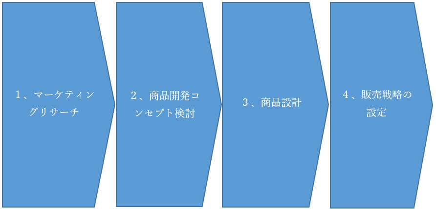 プロダクトアウト型の商品開発は、企業が商品開発に取り組むうえで、作り手の理論や計画を優先させる方法です。マーケティングリサーチを行っていないので、消費者に支持されない商品になってしまう可能性が高いのですが、この開発手法で商品開発をしている事業者は意外と多いです。