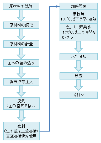 缶詰の特徴は「保存性が高い」「安全で栄養価も保持できる」「経済的」「利用価値が高い」などということです。安全というのは完全密封であり中身は完全に加熱処理しているということです。