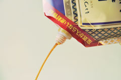 パッケージは逆止弁キャップを備えた容器だがひとつだけご注意を。形状が詰め替え容器に似ているため、中身を食卓用の容器に移し替えて使う消費者もいるようだが、移し替えてしまうと空気に触れて酸化してしまう。せっかくの香り、風味、うま味が逃げてしまうので、このパッケージのまま使用することをお勧めする。