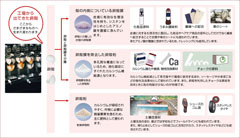 しかもこうした用途の広がりは、単にカルシウムを補うという目的にとどまらない。カルホープを添加することによって、新たな物性改良効果も引き出している。例えば、畜肉加工品にカルホープを添加することで弾力性や結着性が向上し、麺類ではコシがよくなり、パンはふっくらするなど顕著な効果が見出されている。