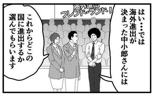 出演したTV番組で進出先を選んでもらうと言われるアフロ。TV番組のアナウンサーが用意したのはどこかで見たことがある巨大なルーレットダーツ。観客からの声援を前に国名じゃないものも混じったルーレットダーツに困惑するアフロ。はっと、気づいたら頬杖をついて居眠りをしている内に見ていた夢だった。夢うつつなアフロに「進出する国を選ぶにはその国の情報を集めて慎重に選ぶことが大事だぶ」と、だぶぴーは忠告するのであった。