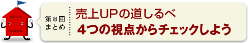 7つのチェックシートをすべて確認して改善を総合的に図るのも良いですし、「売上」を上げる4つの視点のうち取り組むべき視点を絞りこみ、それに対応したチェックシートに絞りこんでから確認するのも、効率的です。