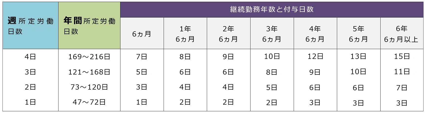 (例)労働者が時季指定した日数2日、計画年休の日数2日の場合