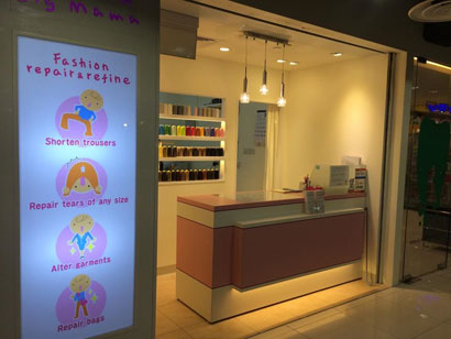 シンガポールではまず日本人の多いエリア(百貨店内)に出店し、その後、現地の衣服修繕店を譲り受ける形で2店舗を「ビック・ママ(リャンコート店、プラザ・シンガプーラ店)」として出店した。同店の修繕・保守作業は、各店舗に常駐する技術者がほぼ手作業で行っている。