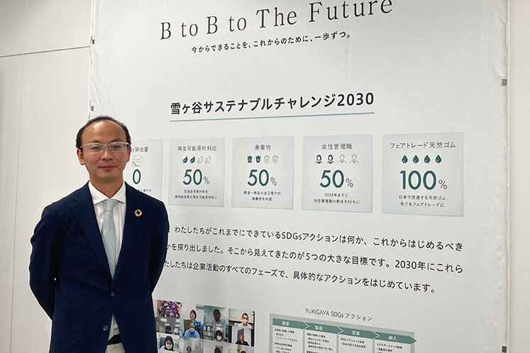 それこそ、2020年3月にSDGsの社内勉強会を始めた当初は、「社長、なに言ってるんだ」という雰囲気で社員の理解は得られなかった。しかし、徐々にSDGsを特集したテレビ番組が増えたことや小学校でもSDGsの教育が進んできたこともあり、「社長が言ってきたことは必要な考えだ」と実感する社員が増え、自社の取り組みに対する肯定感が高まっていった。同社では2030年に向けて「調達~納入の全工程でのCO2排出量を実質0に」「女性管理職の割合を50%に」などの目標を掲げる「雪ヶ谷サステナブルチャレンジ2030」を策定。社員自らがプロジェクトを立ち上げ、それらの目標達成に向け、「すぐにできることからがんばってする」マインドで取り組みを加速させている。