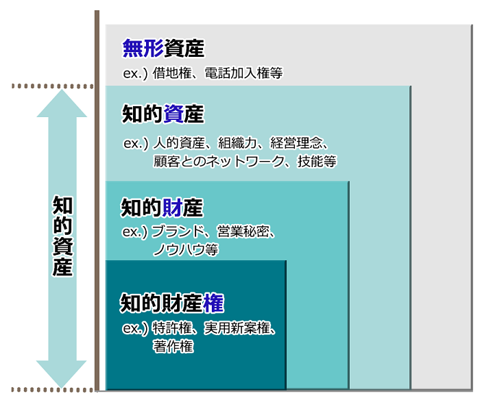 ちなみに、特許やノウハウなどいわゆる「知的財産」も、知的資産の一部です。